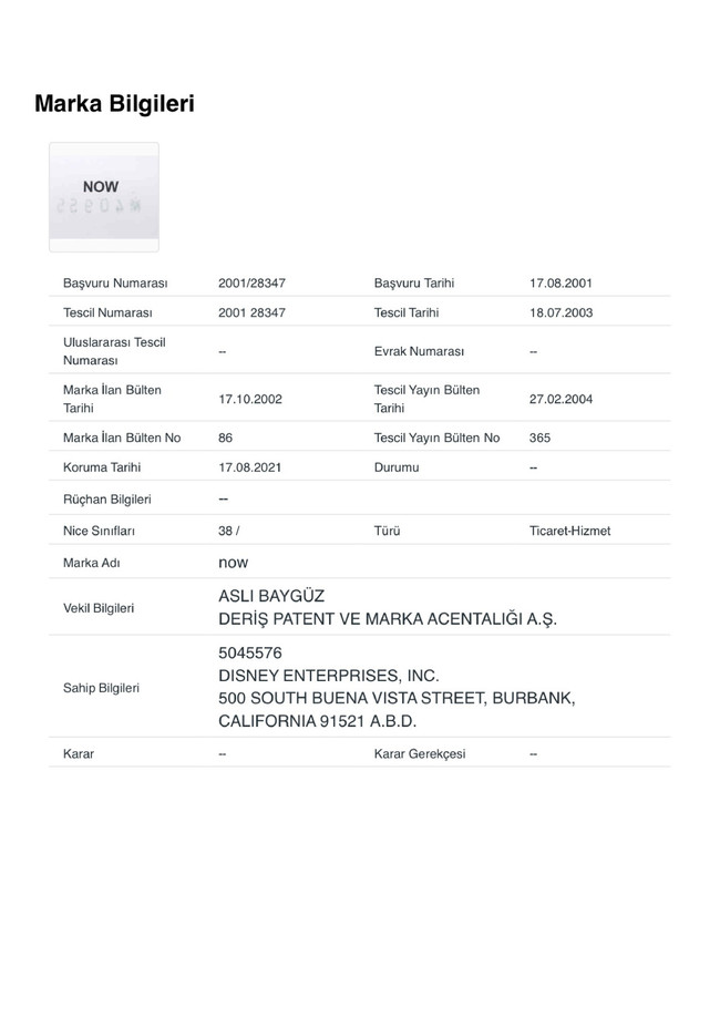 Ancak gelişmeler bununla sınırlı kalmadı. Türk Patent ve Marka Kurumu, 5 Kasım 2025 tarihli kararıyla Now TV'nin mevcut logo ve isim tescilini iptal etti. Karar sonrası kanal, mevcut ismiyle yayın hayatına devam edemeyecek; ya ismini değiştirmek ya da yayınlarını tamamen sonlandırmak durumunda kalacak.