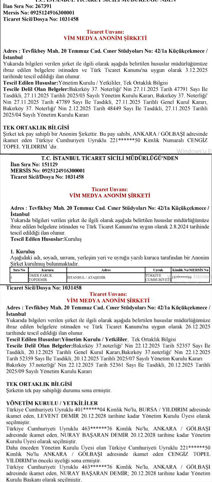 MedyaRadar'dan Ercan Öztürk'ün haberine göre, Cumartesi günü Emrah Doğru'nun arkadaşı ve ortağı Ömer Faruk Topdemir ile ilgili yazımdan sonra çok sayıda telefon aldım. Duyduklarıma hiç şaşırmadım. Anlatılanları MEDYARADAR olarak uzun süredir biliyorduk. Şimdi filmi başa saralım. Vim Medya Anonim Şirketi, 2 Ağustos 2024 tarihinde kuruldu. Şirketin tepesinde ise tek isim bulunuyor; Gıda Mühendisi Ömer Faruk Topdemir. Yargı bürokrasisi ile arası bir hayli iyi olan Emrah Doğru, 2025 yılında Yargı TV'yi kuracağını açıkladı. Bir süre sonra ise kanala vize çıkmadı ve Ekol Sports kuruldu. 2 Temmuz 2025'te RTÜK'ten onay alındı.